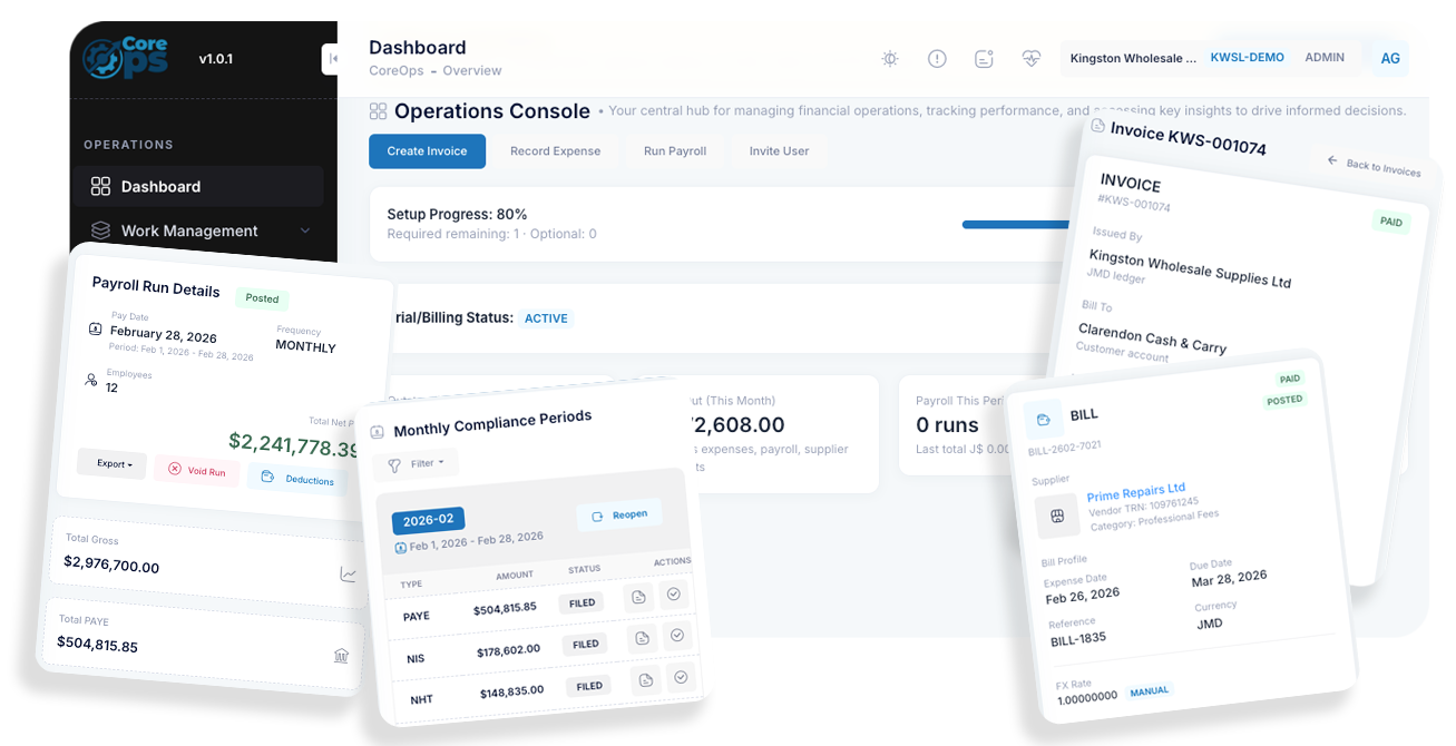 Prefer us to handle the work? Upgrade anytime and let CoreOps manage invoicing, payroll preparation, compliance readiness, reporting, and monthly reviews.